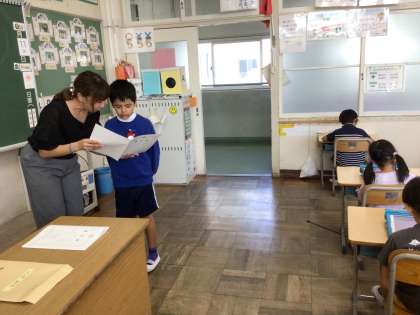 一人一人、頑張ったことなどについて話しながら、通知表を配付しました。後期も、頑張りましょうね。