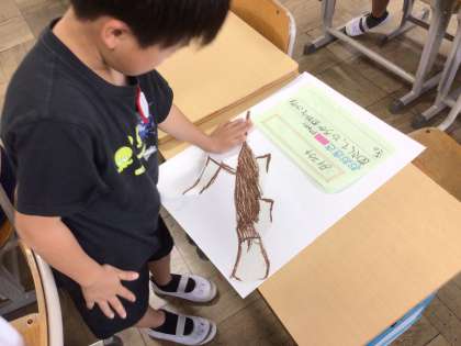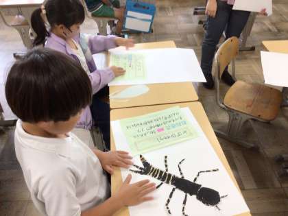 10/15 2年生生活科 公開日 2024/10/15 更新日 2024/10/15 各学年から 今日の2年生の生活科では、1年生に岩本川の生き物について分かりやすく教えるために、絵と文章で画用紙にまとめました。生き物の特徴をよく捉えて上手に作ることができました。