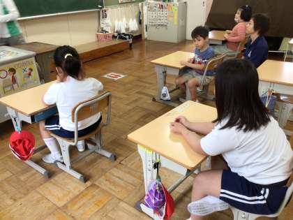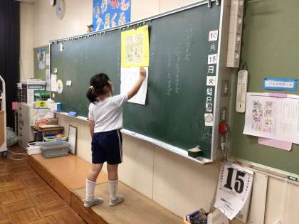 8組の国語では、クイズをしたり、役割を決めて、文章を読む練習をしました。7組と高学年は、運動場を整備する作業を行いました。