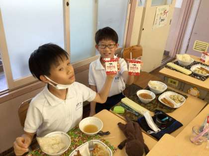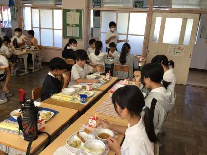 10/15 楽しい給食1 公開日 2024/10/15 更新日 2024/10/15 各学年から 今日は子どもたちの大好きな麺の日です。野菜あんかけ麺でした。さらに牛乳パックの色が青から赤に変わりました。さらに牛乳パックの牛の柄が愛知県の形になってい流ことに気づいた子もいて盛り上がっていました。