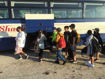 6年修学旅行 バス乗車、出発