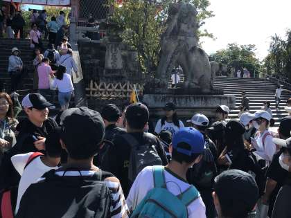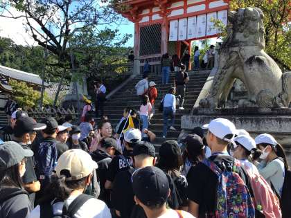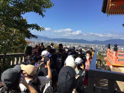 清水寺の駐車場から参道のすごい人混みをかき分けながら清水寺に到着しました。
