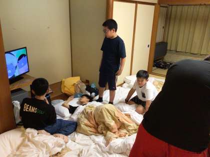 夕食後順番にお風呂に入っていきます。順番を待つ間、テレビを見たり、談笑したりするなど楽しい時間を過ごしていました。