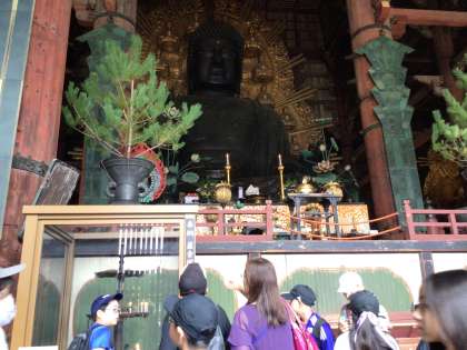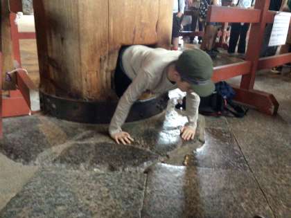 大仏殿では、大きさに圧倒されていました。大仏の鼻の穴と同じ大きさの柱の穴くぐりもしました。