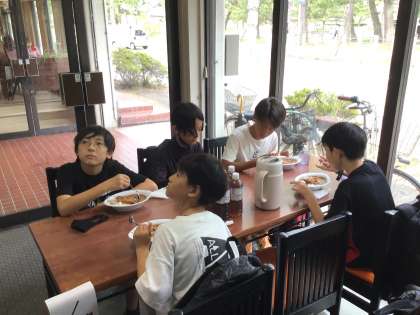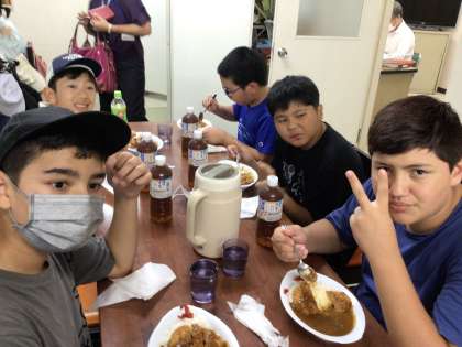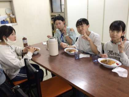 法隆寺で百済観音をはじめとするさまざまな宝物の見学を終えると、法隆寺門前で昼食です。カツカレーをおいしくいただきました。