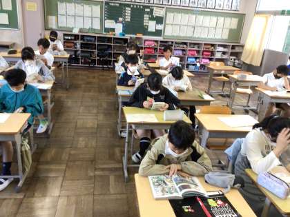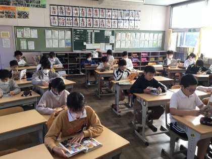 修学旅行が終わって、通常通りの学校生活が始まりました。8時半になると静かに読書をしています。切り替えがしっかりしていてさすが6年生ですね。