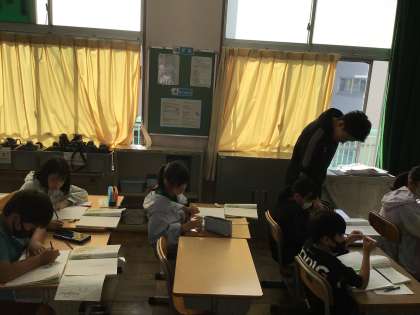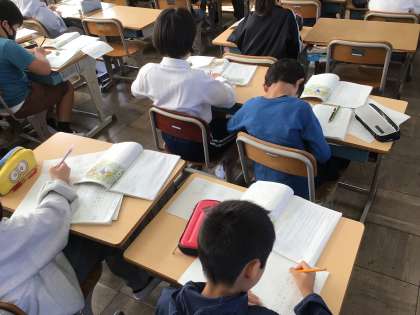 10/21 4年国語 公開日 2024/10/21 更新日 2024/10/21 各学年から 4年国語では、一つの花という物語を読んでいます。今日は第4場面の読み取りを行っていて、感じたことをノートにまとめていました。