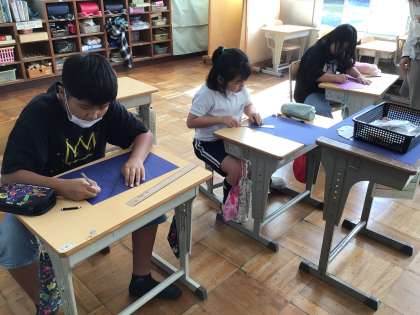 10/21 7、8組国語 公開日 2024/10/21 更新日 2024/10/21 各学年から 8組では、10月の出来事をまとめました。絵を描いたり、写真を貼ったりしました。7組では、ひらがなの練習をプリントをつかって学習しました。