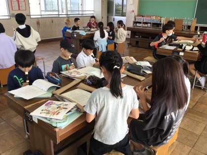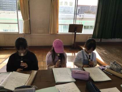 4年音楽では、「いいこと ありそう」「まきばの朝」を歌ったり、リズム練習をしたりしました。「陽気な船長」のリコーダー練習をグループで行いました。前回よりも和音がきれいになりました。