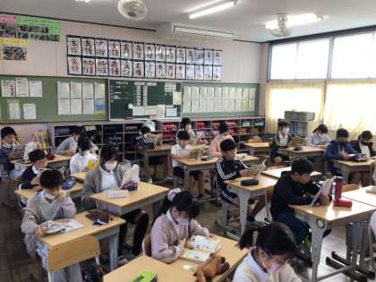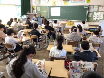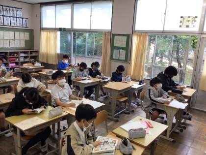 今日も8時半になると落ち着いた雰囲気で読書が始まりました。いい姿勢で本を読んでいますね。