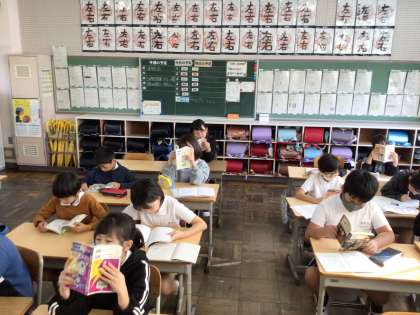 落ち着いた雰囲気で読書ができています。よい習慣を続けていきましょう。