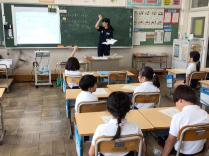2年生算数では、水のかさの学習をしています。今日は、水のかさの計算練習をしました。友だちの意見をしっかり聞いている姿が見られました。