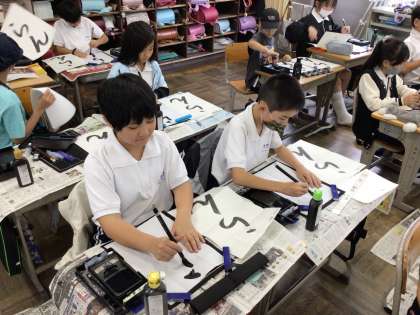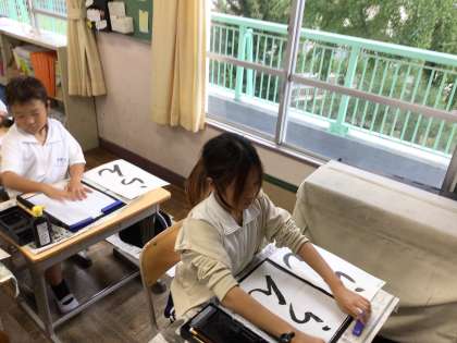 10/22 4年書写 公開日 2024/10/22 更新日 2024/10/22 各学年から 4年書写では、「らん」という字に挑戦します。今まで漢字ばかりでひらがなは今年初めてです。折れの部分もあり、非常に難しい字です。紙を折っていても字のバランスをうまく取れず、苦労していました。