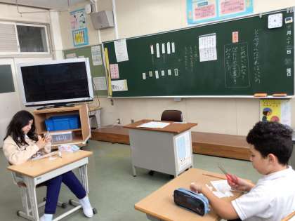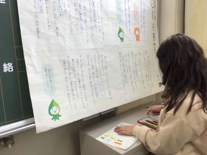 10/22 5年国際国語 どうつなげますか 公開日 2024/10/22 更新日 2024/10/22 各学年から 5年国際学級では、「どうやって文をつなげればいいの?」という学習をしました。ぴったりのつなぎの言葉(接続詞)を選んで、1つの長文を3つの文に分けました。「ところが」がいいのか?「そして」がいいのか? カードを動かしながら考えます。 5枚の接続詞カードを組み合わせて作文した後は、仲間になる接続詞を一覧表から見つけました。これからも引き続き、作文にチャレンジしていきます。