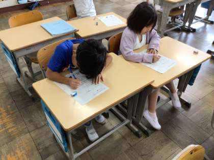 2年生算数では、「かさ」の学習をしています。今日はかさの計算練習や、まとめのプリントや算数の友を使って学習しました。国際学級でも同じようにかさのまとめの問題を解きました。