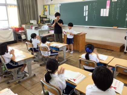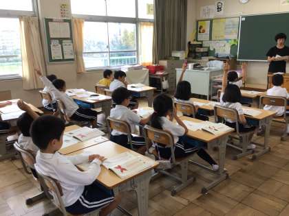 10/23 1年生 国語1 公開日 2024/10/23 更新日 2024/10/23 各学年から 1年生の国語「なにに見えるかな」で、今日は「お話をつなげる」ことをめあてに学習しました。友だちの顔を見て、うなずきながら聞いたり、なるほど、そうなんだねと声をかけたりしながら聞きます。最初に、先生と手本を見せてくれました。