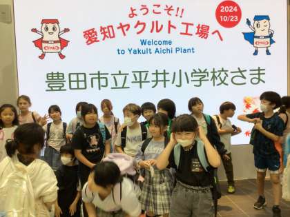 大きなヤクルトの展示に迎えられ、みんな嬉しそうでした。