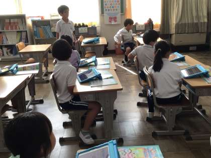 10/24 2年生算数3 公開日 2024/10/24 更新日 2024/10/24 各学年から 2年生の算数では、「かけ算」の学習をしました。学習用タブレットを使って、乗り物に乗っている数について考え、発表しました。