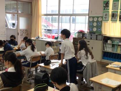 6年社会では、戦国の世から天下統一へという単元を学習しています。天下統一って何だろうという視点で意見を交わしていました。