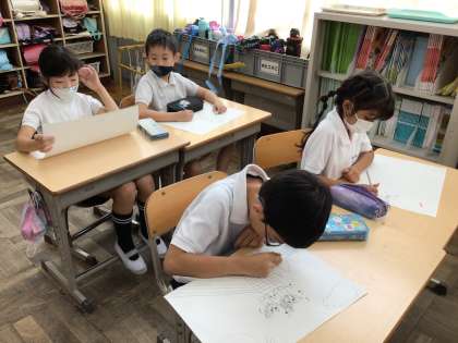 10/28 3年生図工 公開日 2024/10/28 更新日 2024/10/28 各学年から お話の絵を描きています。先生が読むお話を聞いて、想像を膨らませながら描いています。どんな絵ができあがるか楽しみですね。