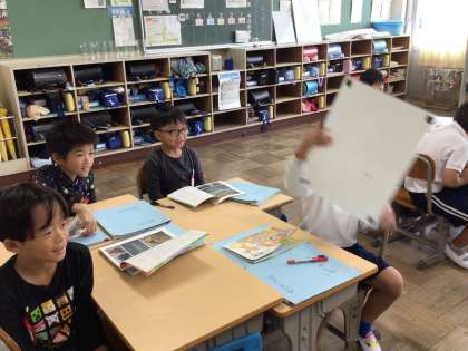 10/28 2年生国語 公開日 2024/10/28 更新日 2024/10/28 各学年から 2年生国語「ビーバーの大工事」では、ビーバー振り返りクイズに挑戦しました。グループごとにクイズの答えをホワイトボードに書き、楽しみながらクイズを解くことができました。