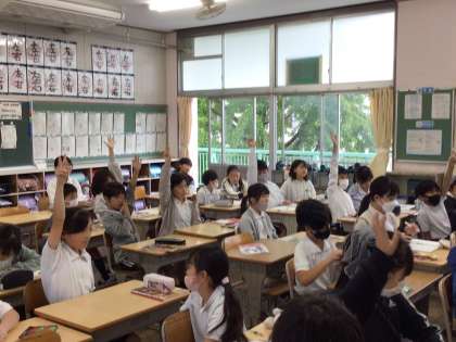 10/28 4年生国語 公開日 2024/10/29 更新日 2024/10/29 各学年から 4年生国語では、説明文「くらしの中の和と洋」の学習をしています。今日は、自分たちのくらしの中で、どんな和と洋があるかを発表しました。