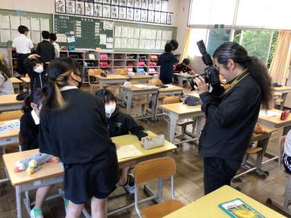 6年教室には卒業アルバムで普段の学校生活の様子の写真を撮るために終日写真屋さんが来ています。