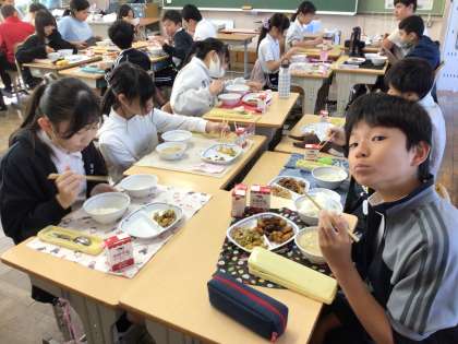 10/30 楽しい給食 公開日 2024/10/30 更新日 2024/10/30 各学年から 友達と楽しく会食をしています。今日は「りっちゃんのげんきサラダ」が出ています。バランスよくたくさん食べてくださいね。6年2組では写真屋さんが会食の様子を写真に収めていました。