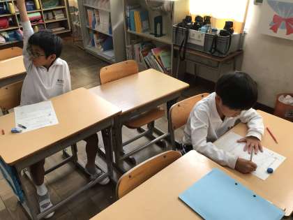 10/31 2年算数 公開日 2024/10/31 更新日 2024/10/31 各学年から 2年算数では、「いろいろなかけ算をやってみよう」というめあてで学習をしました。⚪︎⚪︎の△つ分という関係からかけ算の式をつくることができるようになってきました。発言者の方を見て話を聴く姿勢もよかったです。