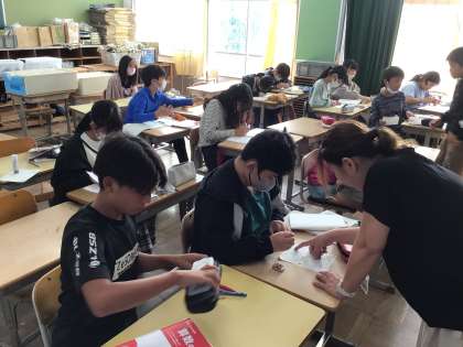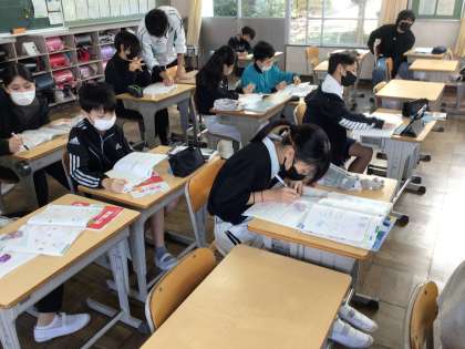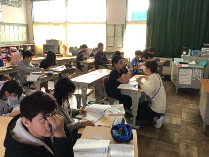 6年生の算数では、「図形の拡大、縮小」の学習をしています。今日は、少人数で3クラスに分かれて拡大図や縮図をかきました。正確にかけるように頑張りました。
