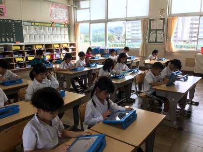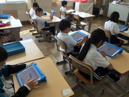 10/31 1年生国語 公開日 2024/10/31 更新日 2024/10/31 各学年から 1年生国語では、学習用タブレットのキュビナを使って、ひらがな、カタカナの問題を学習しました。絵や言葉をみて、どちらが正しいかを選ぶ問題を解きました。国際学級では、文章を読んで問題に答えるプリント学習をしました。