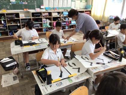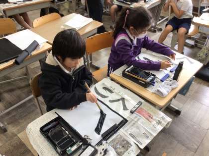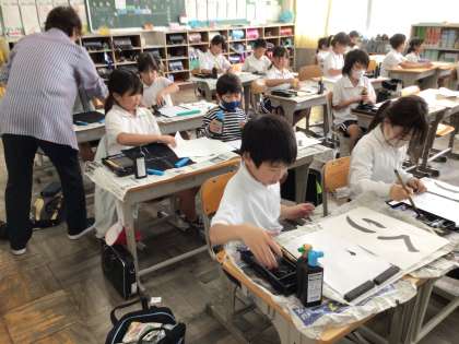 11/1 3年生書写 公開日 2024/11/01 更新日 2024/11/01 各学年から 秋の味覚「くり」という字の練習をしています。集中して書き終え、「見て。上手に書けたよ」とうれしそうに出来上がった字を見せる子どもたち。集中した分、いい字が書けています。