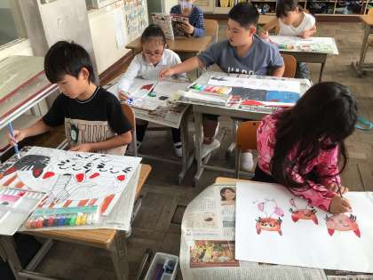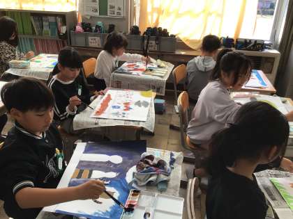 11/6 3年生図工 公開日 2024/11/06 更新日 2024/11/06 各学年から 「そば屋のまねきねこ」というお話の絵を描いています。絵の具で色を塗って、仕上げに入っています。様々な猫の表情を工夫して描いています。