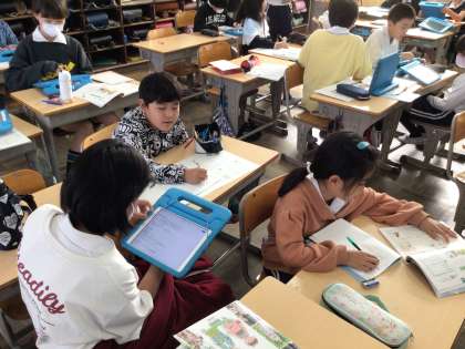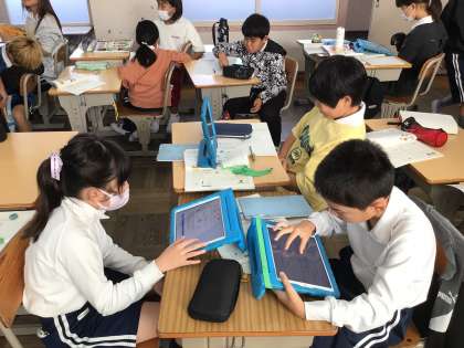 11/6 4年生国語 公開日 2024/11/06 更新日 2024/11/06 各学年から 私たちのくらしの中にある和と洋を新聞にまとめる学習をしています。「和服と洋服」「和食と洋食」など班ごとに新聞のテーマを決めました。