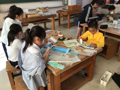 11/6 4年生図工 公開日 2024/11/06 更新日 2024/11/06 各学年から ノコギリで切った木片を組み合わせて作品を作っています。木片に色を塗ったり、ボンドでくっつけたりしながら動物やロボットなどに仕上げています。