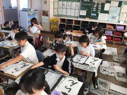 11/7 4年書写 公開日 2024/11/07 更新日 2024/11/07 各学年から 4年書写では、「らん」の清書をしました。字のバランスや折れの筆使いなどのポイントを確認した後清書に入りました。「最初は漢字に比べて簡単だと思ったけれど、ひらがなは難しかった」という感想を聞くことができました。
