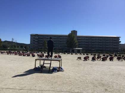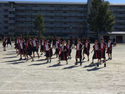 11/7 5・6年合同体育1 公開日 2024/11/07 更新日 2024/11/07 各学年から 4限は運動場で5・6年合同体育を実施しました。衣装を着てソーラン節を踊りました。日増しにソーラン節の精度が高まってきていると感じました。広い運動場でより大きく動きを見せるなど意識してがんばっていきましょう。