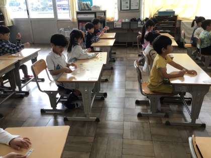 11/12 1年生算数2 公開日 2024/11/12 更新日 2024/11/12 各学年から 1年生算数では、たし算カードを使って学習しています。今日は、答えが11、12、13、…となるカードを選んで机に並べました。並べてから、どんなきまりがあるか考えました。