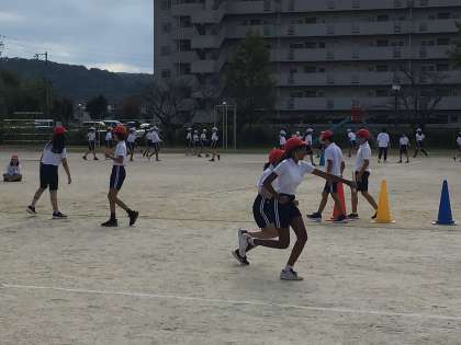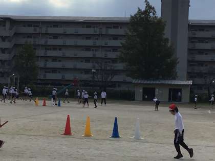 5年体育では、リレーのバトンパスの練習を行っていました。テイクオーバーゾーン内での動きを工夫するとかなりスムーズなリレーになるので、1組も2組もそれぞれ練習に励んでいました。