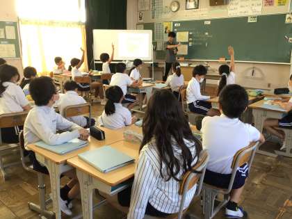5年生社会科では、食料自給率について考えました。外国産の物と日本産のものについて、どのような違いがあるか等考えました。