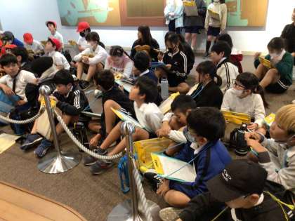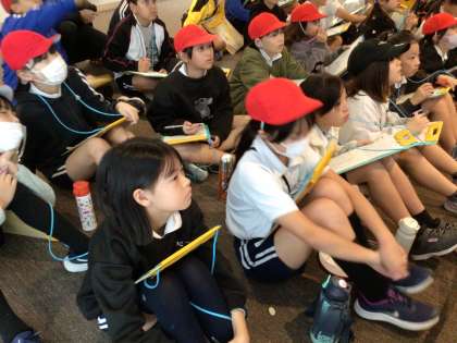 11/4 4年生トヨタ鞍ヶ池記念館見学 公開日 2024/11/14 更新日 2024/11/14 各学年から 自動織機の糸の反発を生かした仕組や糸が切れた時に自動で機械が止まる仕組を説明していただき、実際に見せていただくと、子ども達から「おお」という歓声が上がりました。