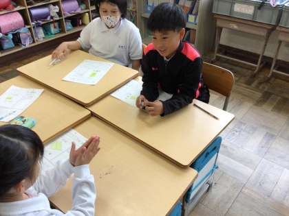 11/14 2年生生活科 公開日 2024/11/14 更新日 2024/11/14 各学年から 2年生の生活科では、1年生と一緒に行う「おもちゃフェスティバル」の計画を立てています。どんなおもちゃにするか、グループでも話し合いました。