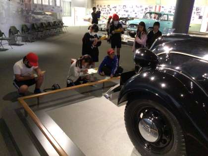 11/14 4年生トヨタ鞍ヶ池記念館見学 公開日 2024/11/14 更新日 2024/11/14 各学年から 展示室を自由に見学しています。音が出るジオラマや今ではなかなか見られない型の自動車を熱心に見て、メモをしています。