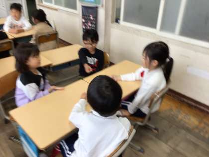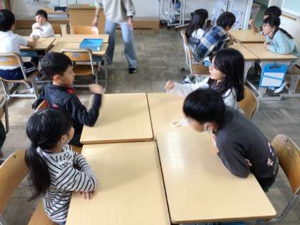 「アドジャン」でどんどん質問に答えていきます。その際、あいての顔を見て聴くことができる、人の話を頷きながら聴くことができるといっためあてを意識して進めていきます。