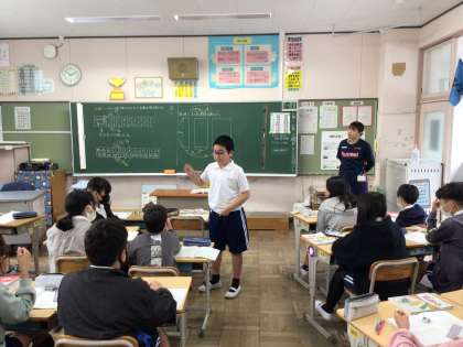 ともなって変わる2つの数量をまとめた表から気づいたことを発表していました。6年算数で学ぶ比例と反比例は中学校でもグラフを描いたり、一次関数など発展的に取り扱うので、特徴を整理して覚えましょう。
