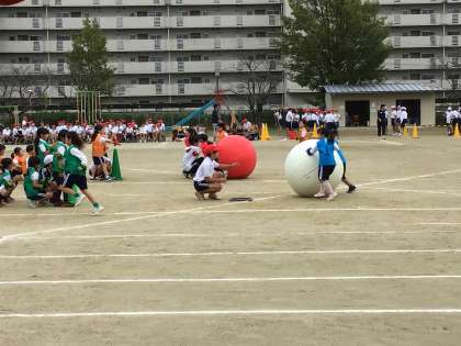 11/16 やまびこフェスティバル 1、2年生ボール運び 公開日 2024/11/16 更新日 2024/11/16 学校行事 やまびこフェスティバル 1、2年生ボール運び 大きなボールも力を合わせて転がして運びました。
