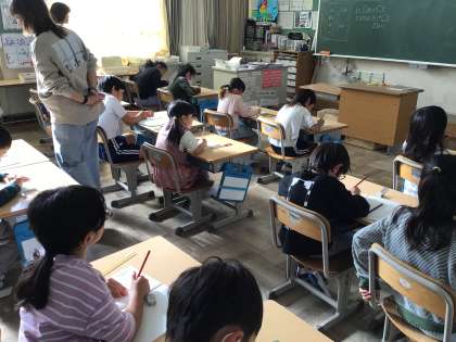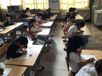 今日の2年生算数では、九の段の九九を使って、問題を解きました。着目する言葉や、数字を見つけ、式を立てたり、ノートに書いたりしました。