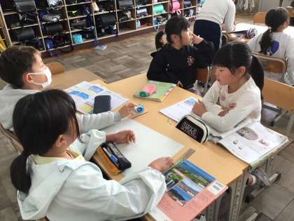 3年生理科「地面の様子と太陽」で、今日は「時刻ごとの太陽の位置を調べよう」というめあてで学習しました。方位磁針の使い方の動画を見て学習したり、太陽の位置を調べる方法を考えたりしました。