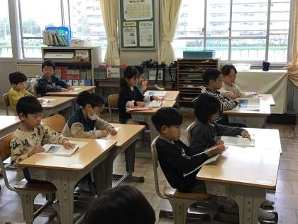 11/20 1年生国語2 公開日 2024/11/20 更新日 2024/11/20 各学年から 1年生の国語「いろいろなふね」では、その船の「つくり」や「役目」について学習しています。今日は、「ぎょせん」について文章を読み、言葉を見つけ、プリントにまとめました。