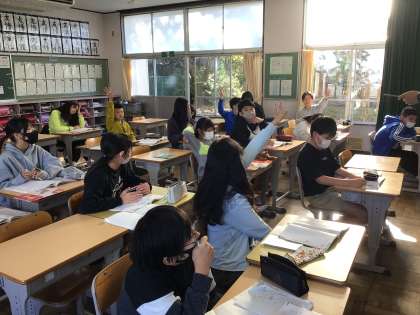 6年生算数では、「比例と反比例」について学習しています。今日は少人数で3クラスに分かれて、比例する2つの関係をグラフに表しました。